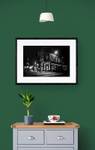The prints shown on walls are for illustration purposes only, to show how the print could look in a space. The image with a white inner border and black outer is also for illustration purposes.